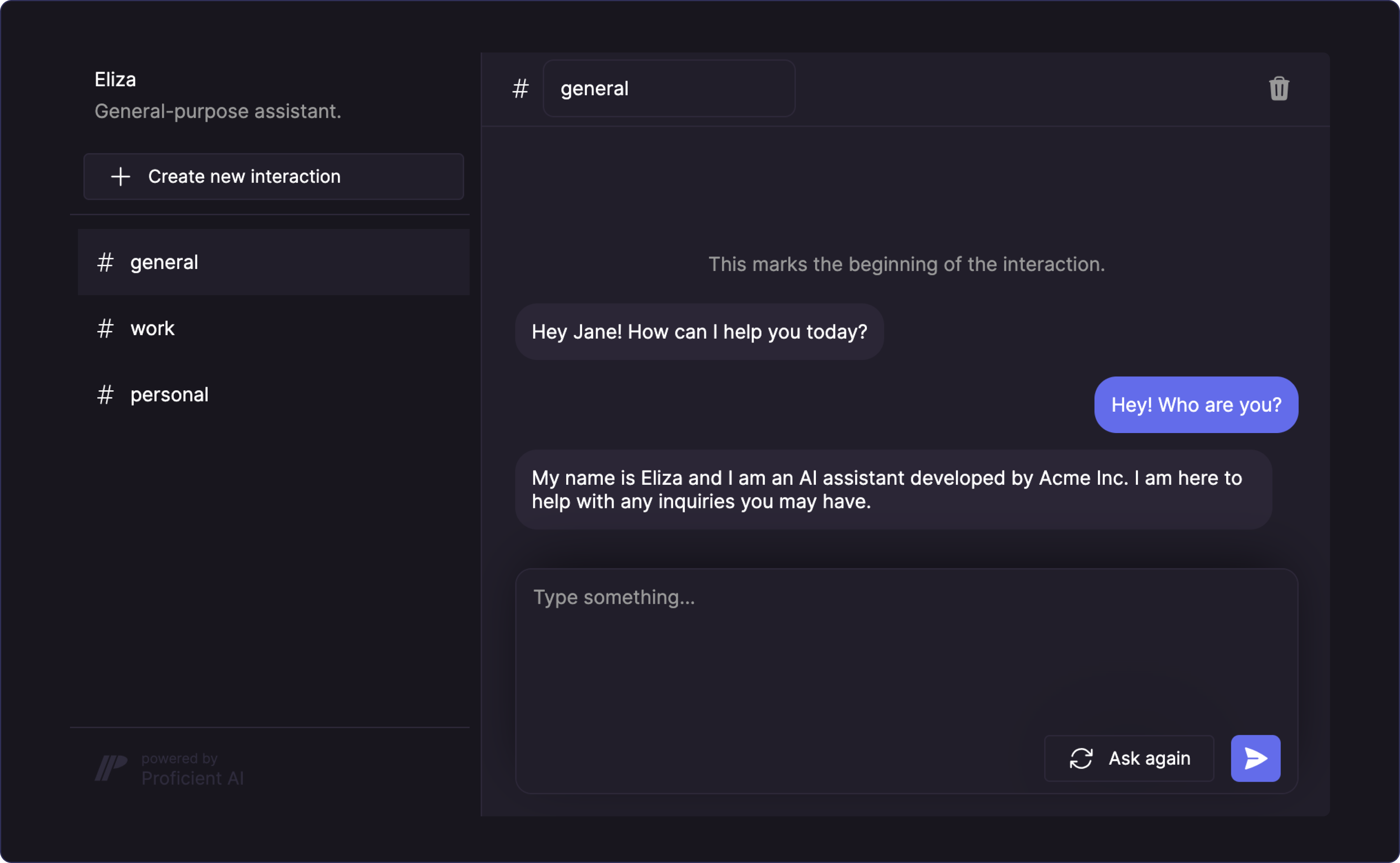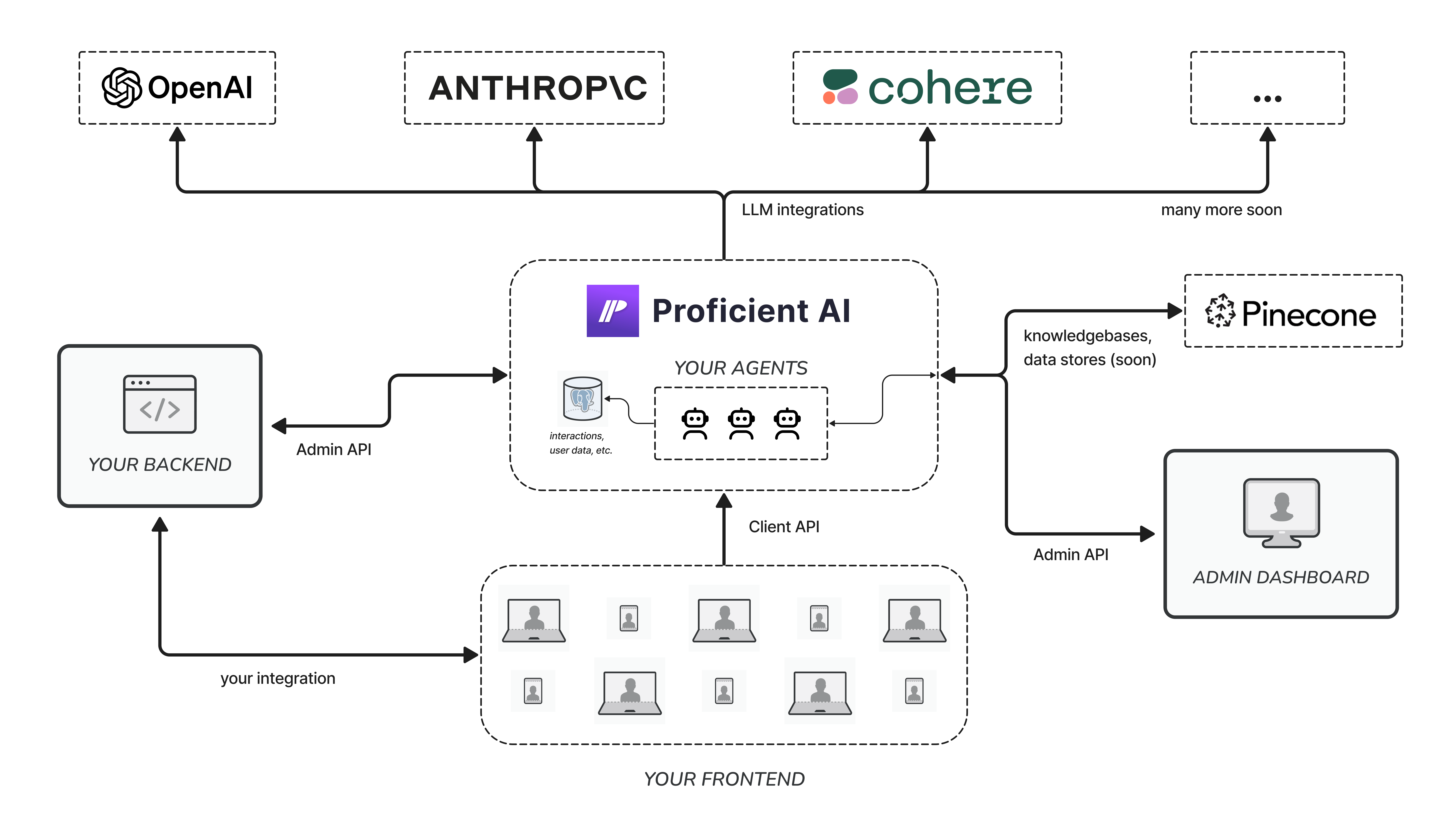 Proficient AI is a platform that enables developers to add conversational AI agents to their apps in minutes. Our interaction APIs and SDKs coupled with our powerful web dashboard are the simplest way teams can add and operate -powered agents for their end-user applications.